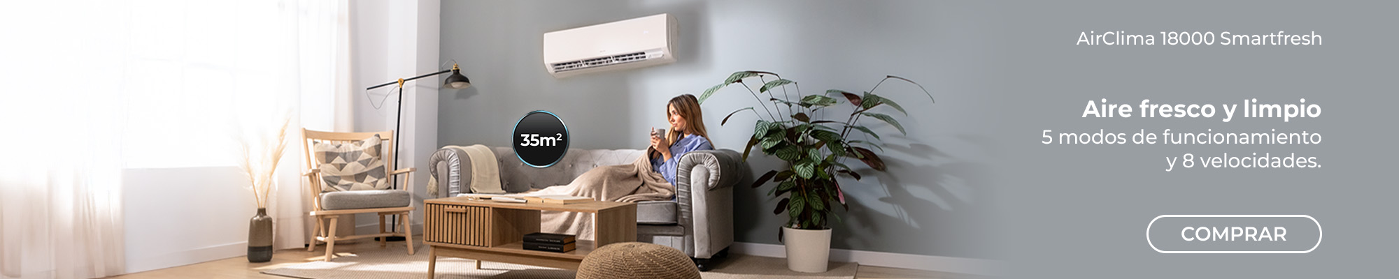 Enfría estancias de hasta 45 m2 rápidamente gracias a su gran capacidad de enfriamiento de 24000 BTU.