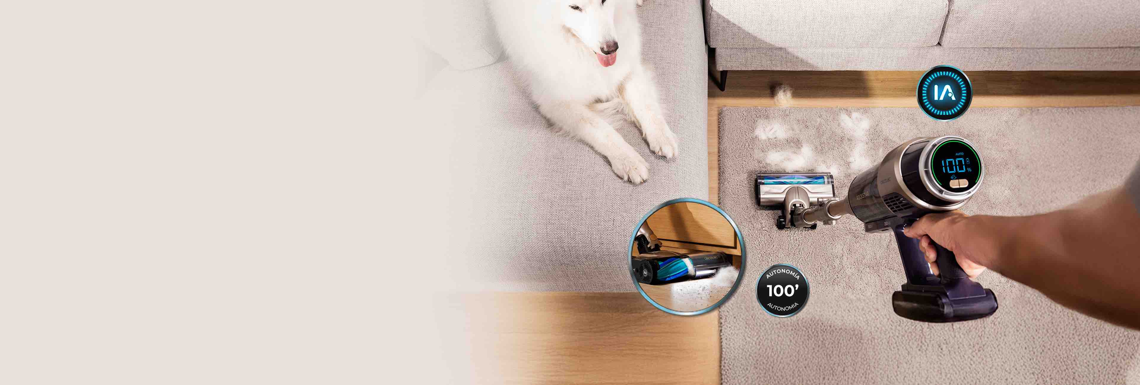 Olvídate de controlar la potencia; su IA lo hace por ti según la suciedad y tus movimientos.