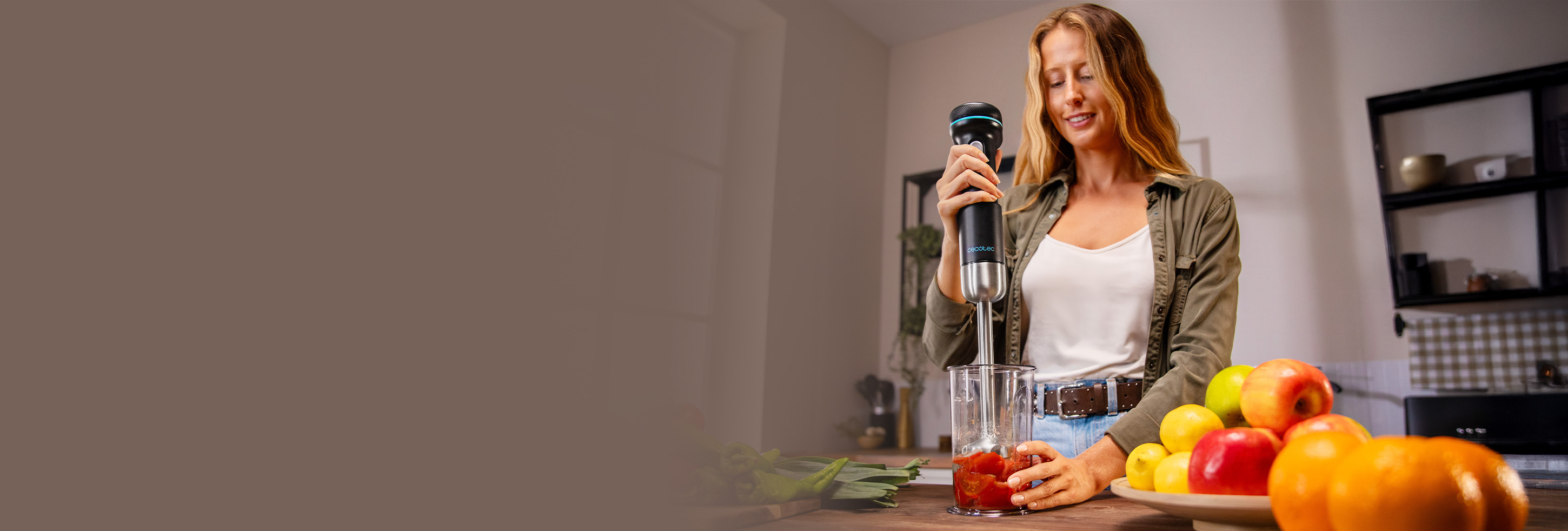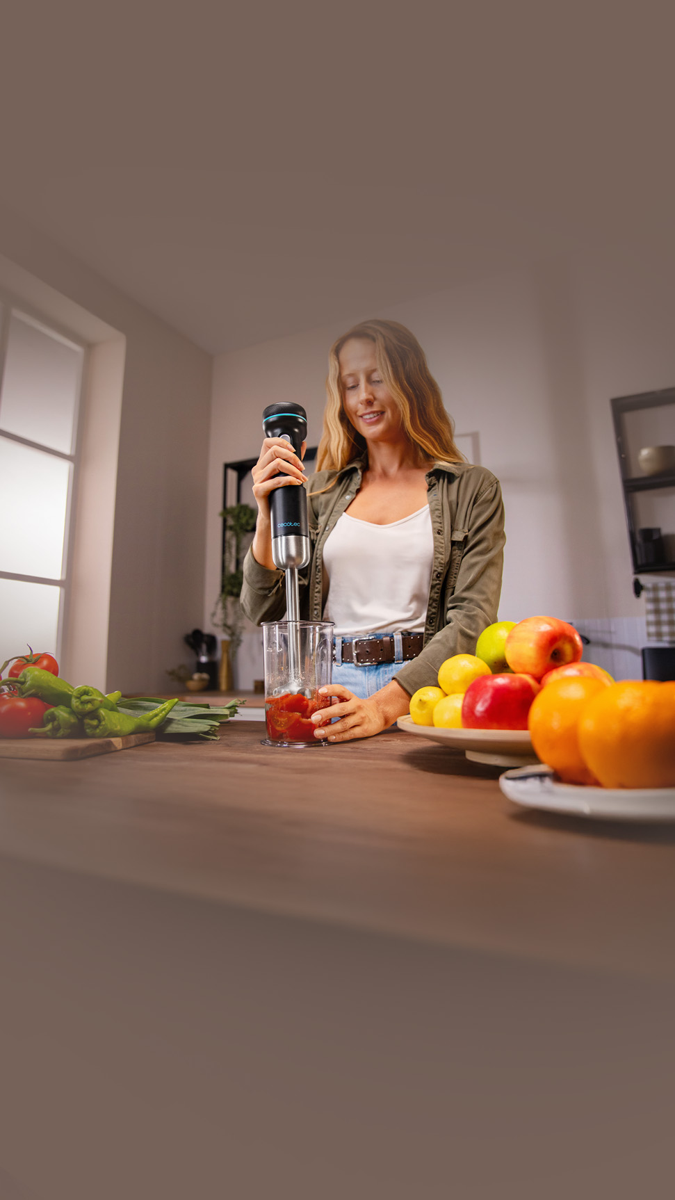 Permite batir tanto en cacerolas de gran tamaño como en vasos altos llegando a todos los rincones.