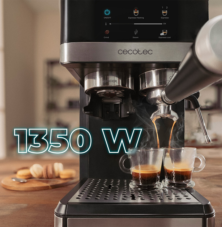 Prepara café recién molido de forma rápida gracias a su potencia de 1350 W, que permite preparar hasta 2 cafés con la temperatura perfecta para despertar tus sentidos con cada taza.