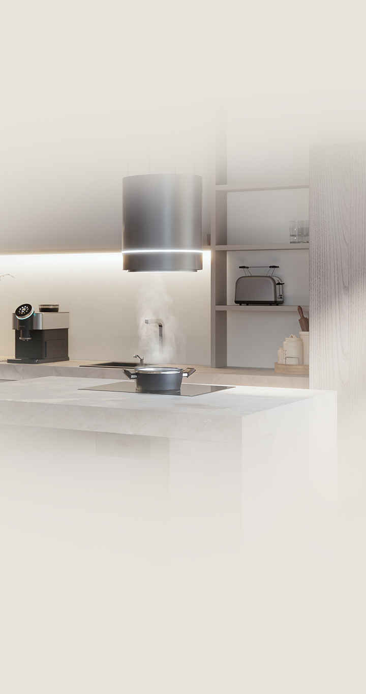 Con sus 210 W de motor y una potente succión de 800 m³/h absorbe sin esfuerzo humo y vapor, manteniendo el ambiente siempre limpio.