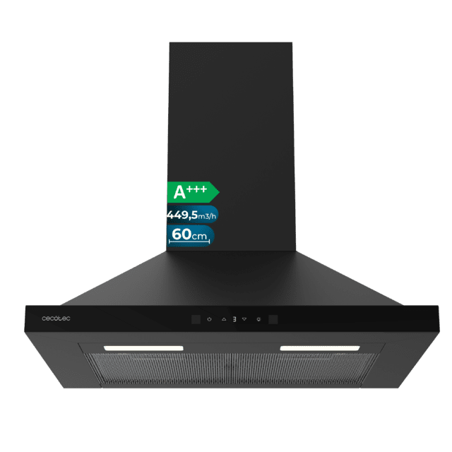 • Cecotec Bolero Flux PT 604400 Black A+++. Su diseño pequeño de 60cm en elegante acabado negro y frontal cristal negro que aporta un toque moderno y profesional a cualquier cocina, combinando resistencia y fácil limpieza.