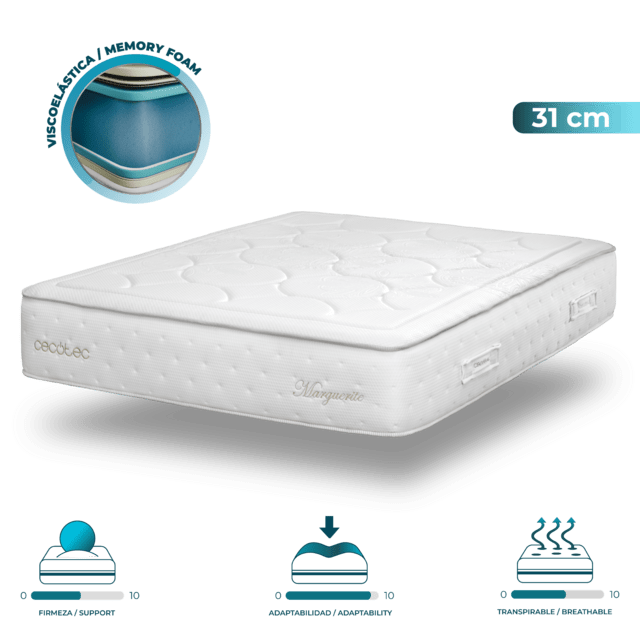Flow Heritage Margerite 90x190 Colchón viscoelástico EchoFlex 40: cuenta con espuma exclusiva de densidad 40kg/m3 que reparte la presión como la viscoelástica pero sin efecto memoria.
