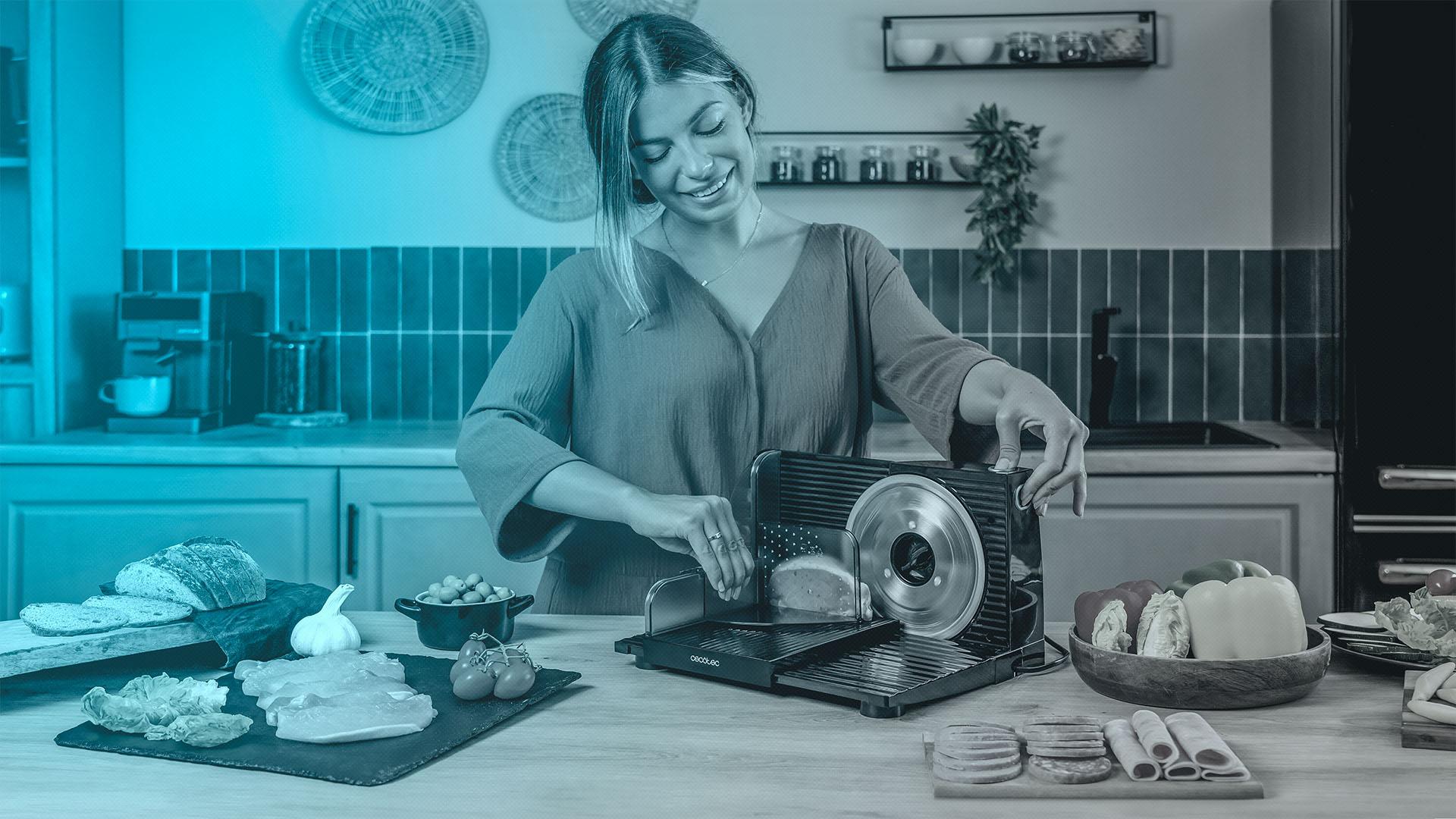 Carne, queso, embutidos, pan o verdura. Gracias a su disco podrás cortar todo tipo de alimentos sin esfuerzo.