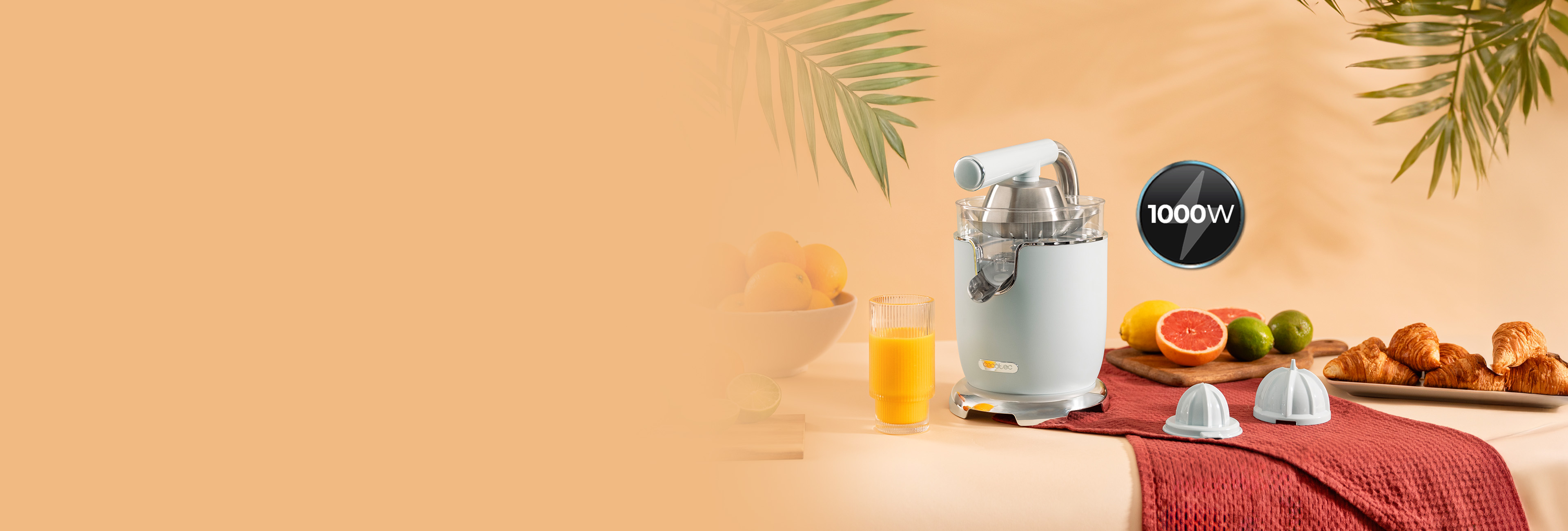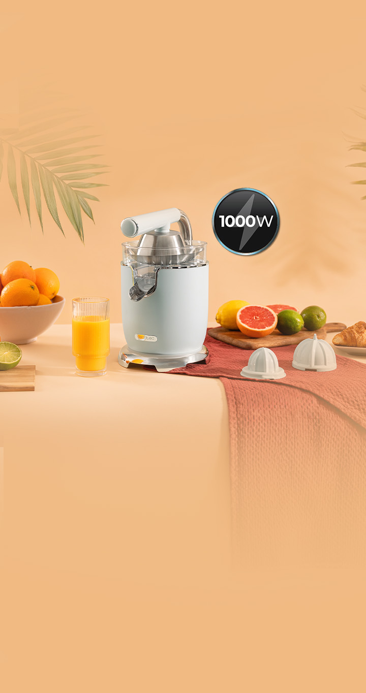Exprime tus frutas favoritas de forma rápida y sencilla con sus 1000 W. ¡Aprovecha al máximo cada pieza y saborea los zumos más deliciosos!