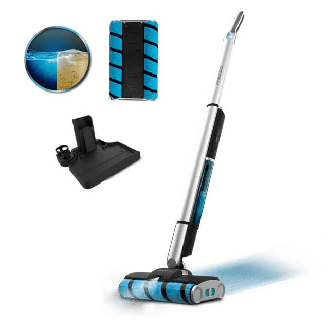 Consigue una limpieza profunda gracias a su doble rodillo súper absorbente, que desincrusta y recoge los líquidos con sus filamentos absorbentes para dejar tu suelo brillante.