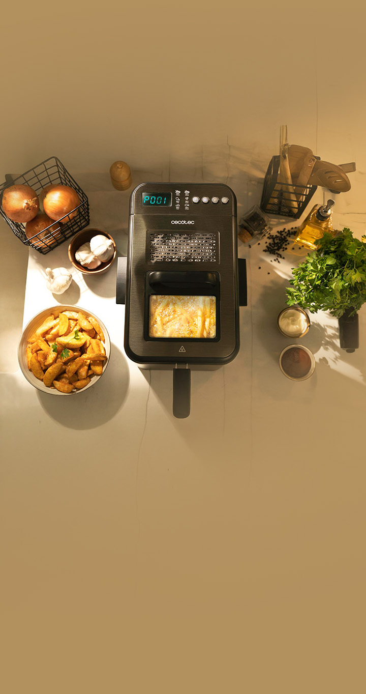 Cuenta con 3270 W de potencia con los que freír de forma rápida y eficaz los diferentes alimentos utilizando la cantidad necesaria de aceite.