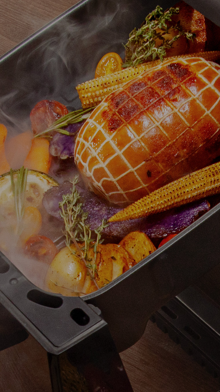 Su función Sync permite cocinar dos recetas diferentes en cada cubeta y programarla para que ambas estén listas al mismo tiempo. Olvídate de esperar y de que se enfríe la comida.