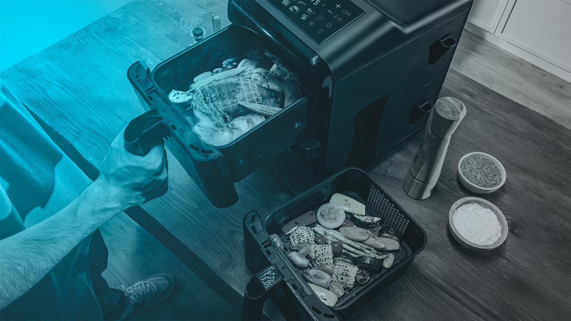 Gracias a su diseño de doble cubeta, podrás cocinar un plato principal y su acompañamiento o dos recetas diferentes en cada rack.