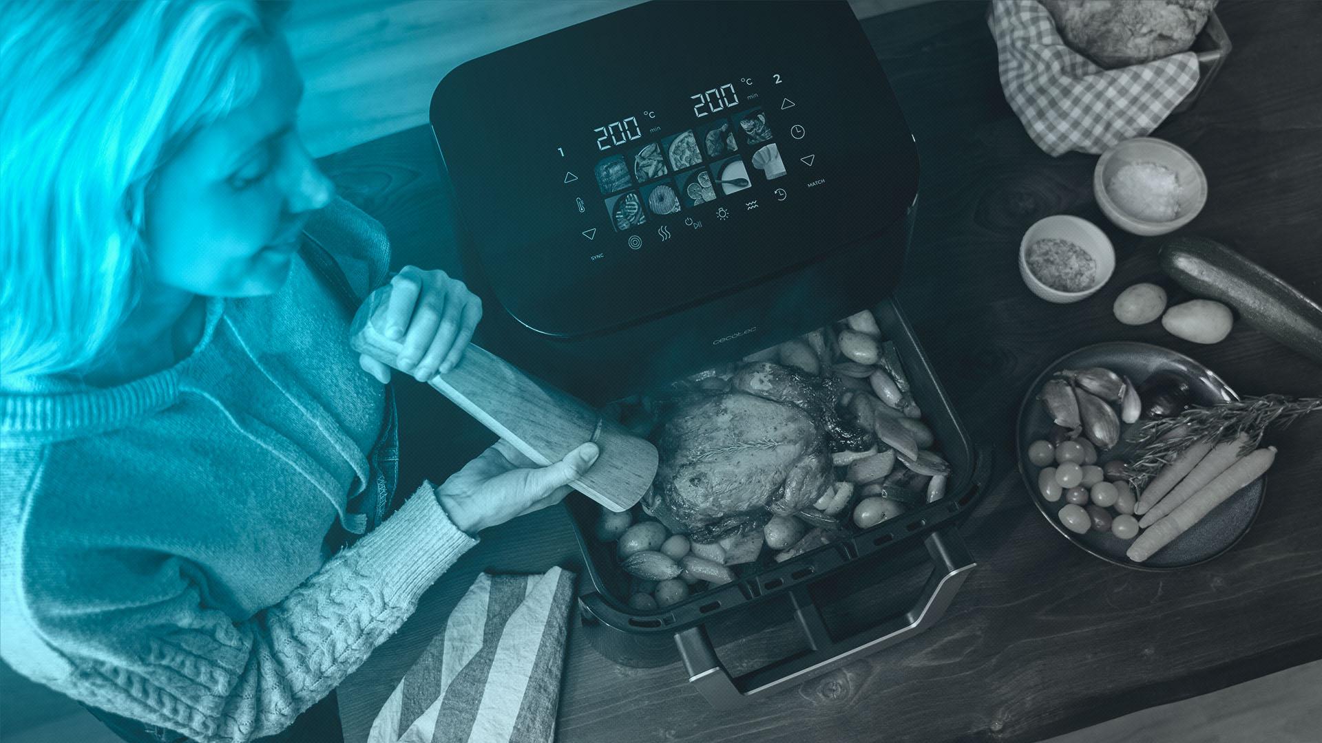Cocina todo tipo de recetas con poco o nada de aceite de forma rápida, gracias a sus 2900 W de potencia, que garantizan resultados excelentes.