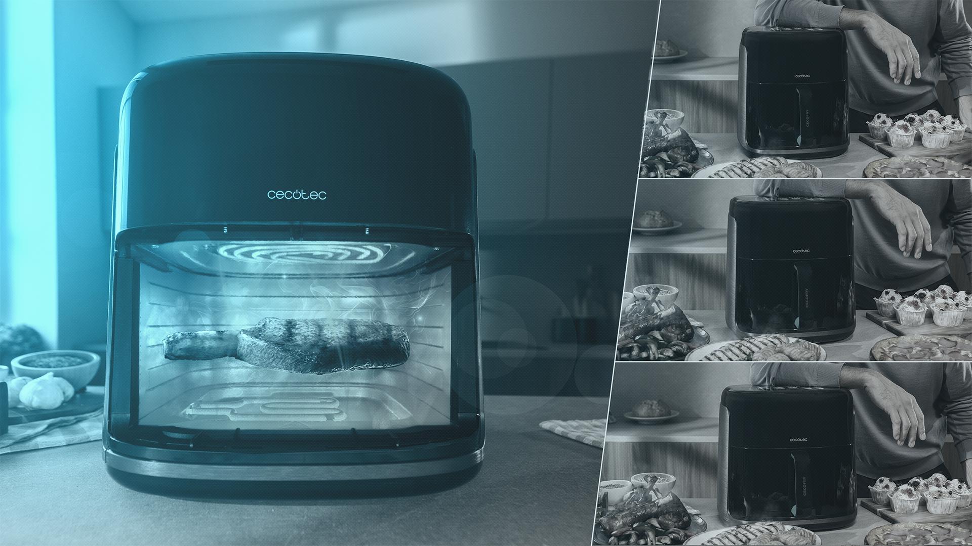Cecofry vuelve a innovar con su función BBQ. Este modo precalienta la cubeta para ahumar el interior y, además, permite que su parrilla alcance una elevada temperatura para sellar los ingredientes.