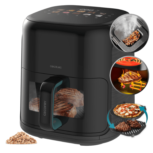Disfruta del auténtico sabor a parrilla en casa, sin humos y de forma saludable. Añade chips de madera y transforma tus recetas con un toque ahumado único.