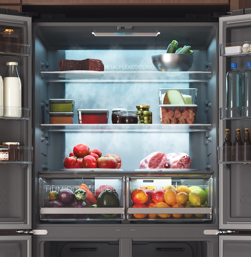• Abre por zonas y domina el frío. Diseño de 4 puertas que guarda un gran interior con estantes de lado a lado. Además, su apertura por zonas permite conservar mejor el frío.