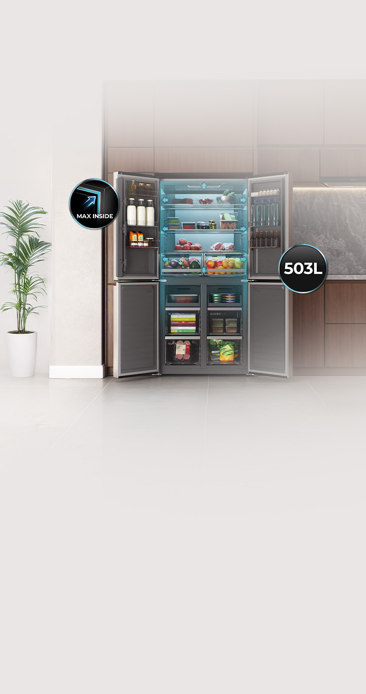 Abre sólo la zona que necesites, ahorra energía y gana comodidad gracias a su diseño con 4 puertas.