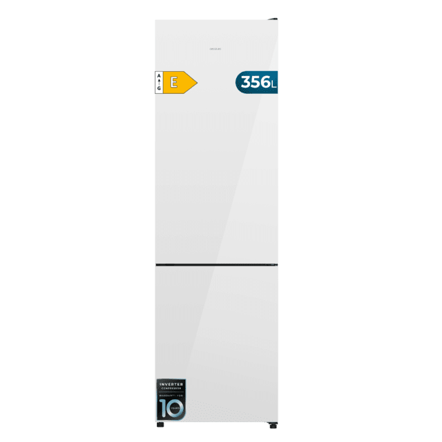Bolero CoolMarket Combi 356i White Glass E - Frigorífico Combi Cristal Blanco, 356L, Ancho 59,5cm, Alto 200cm, Total NoFrost, Multi Airflow, Fast Freezing, FreshnessFlex HUB, HumidityFlex HUB y Puerta Reversible - Iluminación LED y Display Interior
