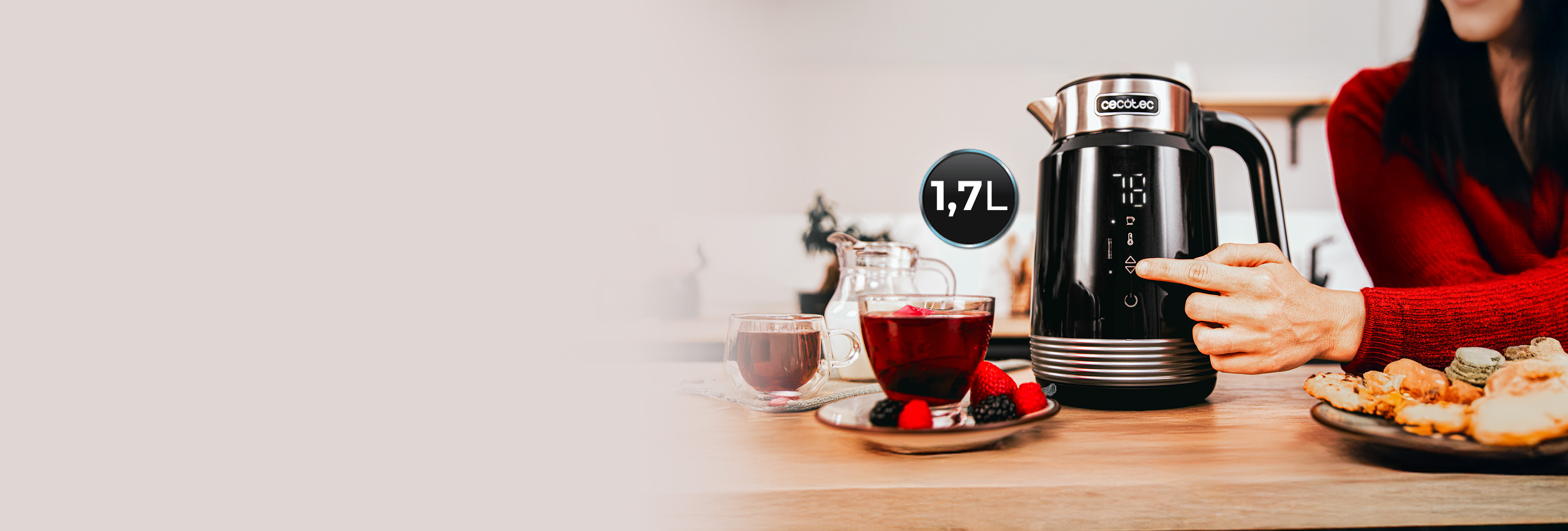 Gran potencia y 1,7 litros de capacidad para calentar hasta 8 tazas en tiempo récord.