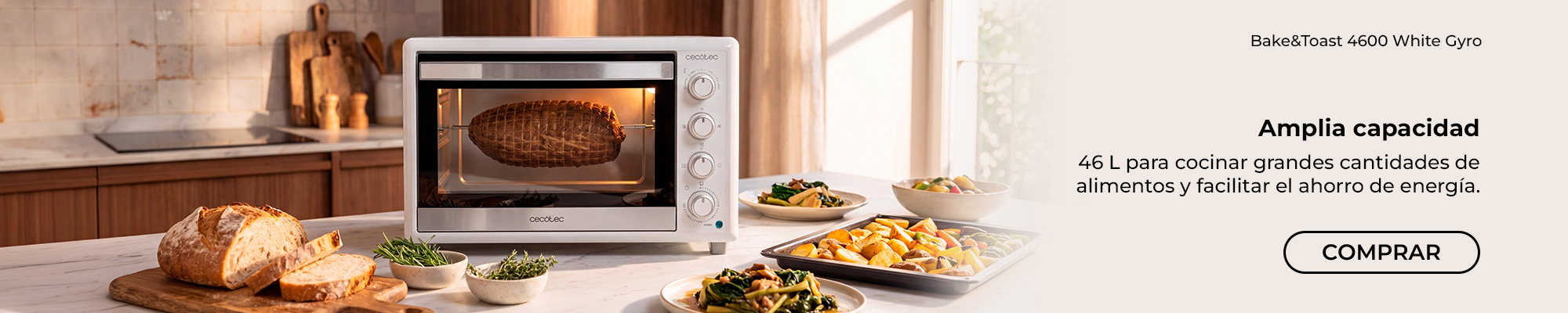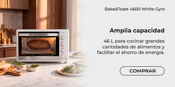 Bake&Toast 4600 White Gyro horno sobremesa con gran capacidad de 46 Litros, 12 funciones combinables, gran potencia de 2000W y rustidor giratorio.