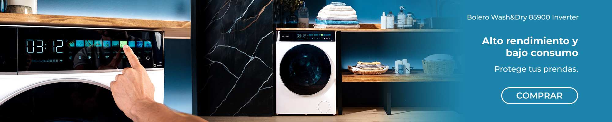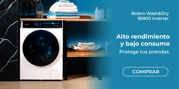 Bolero Wash&Dry 8580 Inverter Ice Blue B Lavadora secadora Ice Blue de 8 kg  - 5 kg de capacidad y 1400 rpm, 16 programas, Motor Inverter Plus, clase B, SteamMax, OnSmart, Fuzzy Logic, Smooth Wash,  SpaCare, Stain Match y Goma antibacteriana.