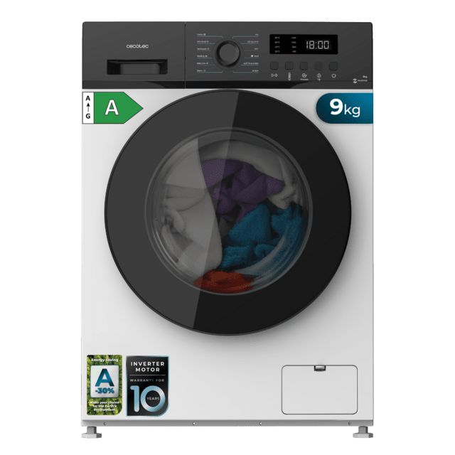 • Gran capacidad de 9 kg para lavar más ropa en menos ciclos, ahorrando tiempo y energía.
