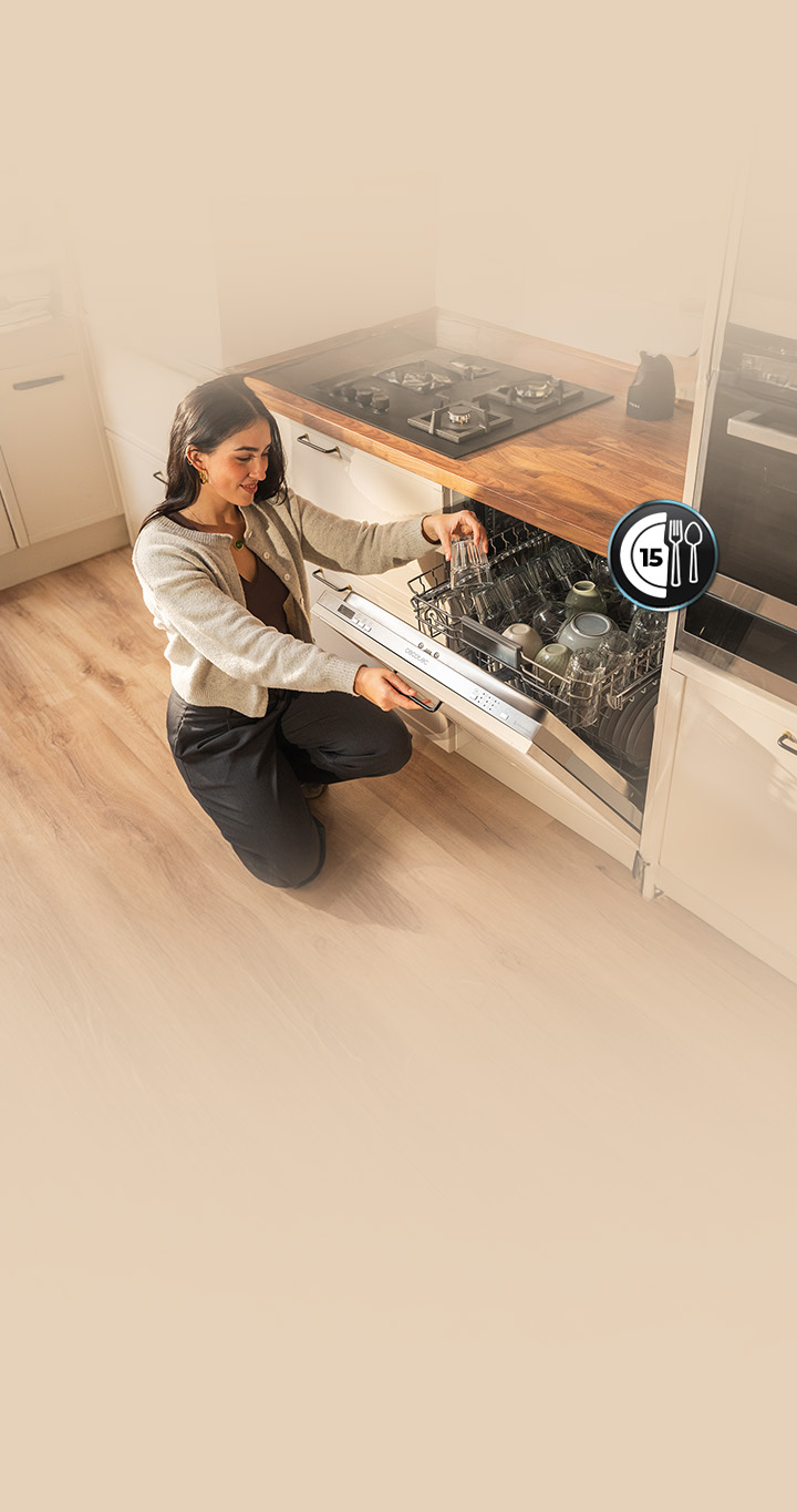 Con la tecnología Blue Water System reduce el consumo de agua hasta 5,4 L y disminuye el gasto de energía gracias a su secado natural.
