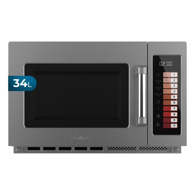 FlatPro 3400 Microondas comercial con botones táctiles de 34L y 2100 W.
