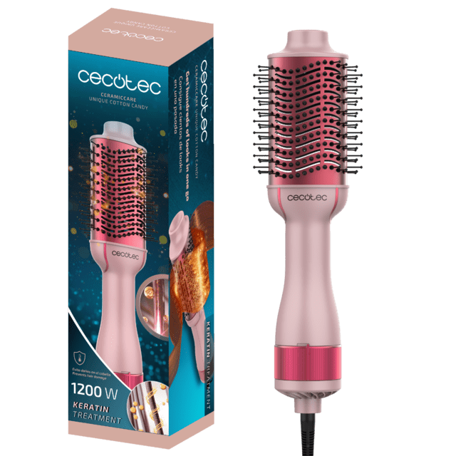 CeramicCare Unique Cotton Candy: Cepillo de aire voluminizador con revestimiento cerámico con queratina y aceite de argán, 1200W de potencia y 3 modos.
