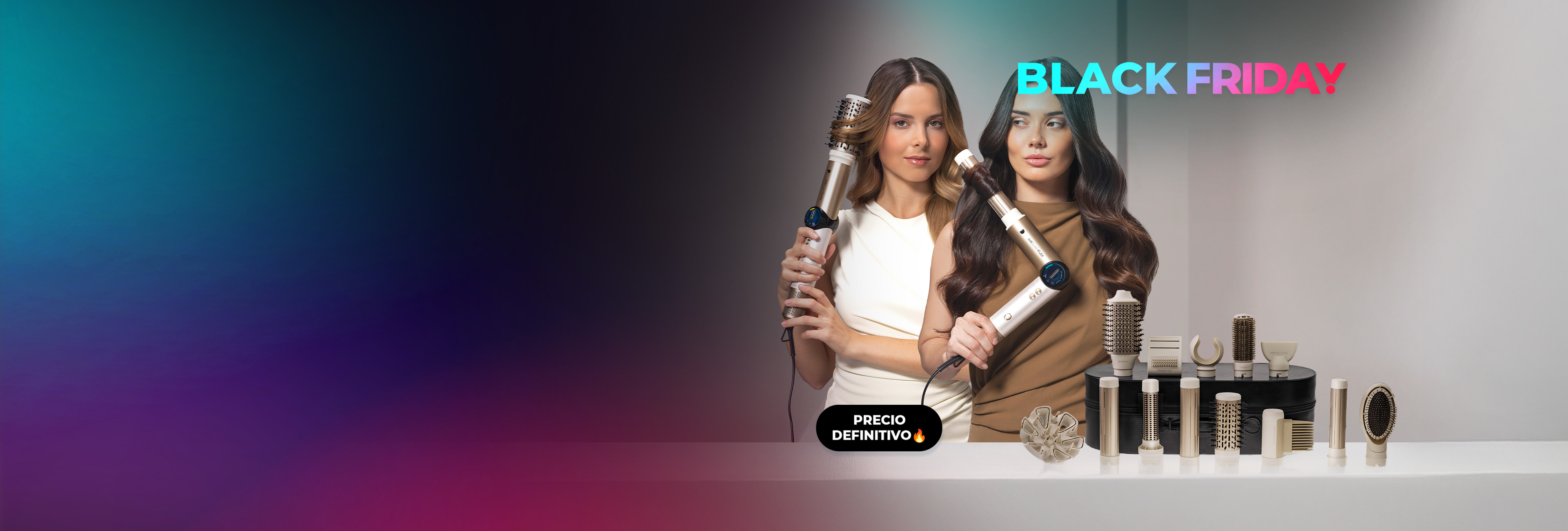 Ajusta su mango plegable según el cabezal elegido y moldéado a tu gusto para llegar fácilmente a las zonas del cabello más complicadas de alcanzar.