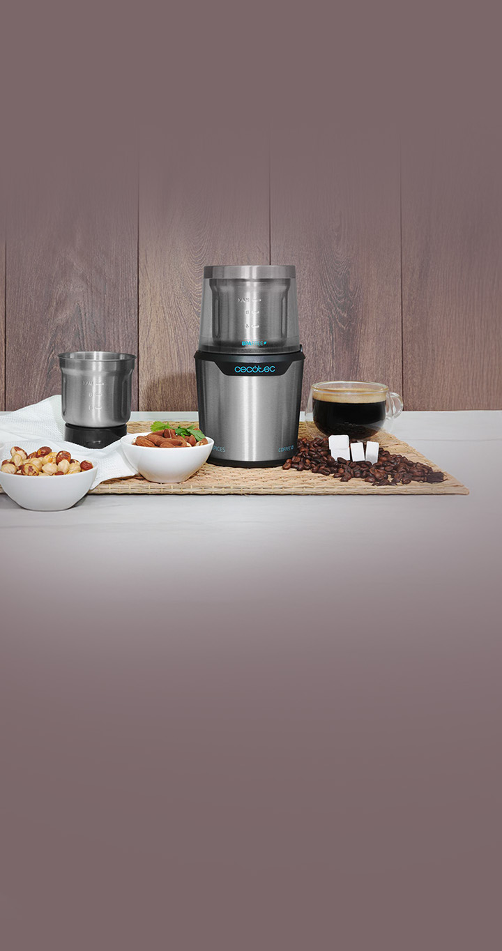 Tiene doble función, ya que es capaz de moler y picar o triturar con solo cambiar el depósito.
