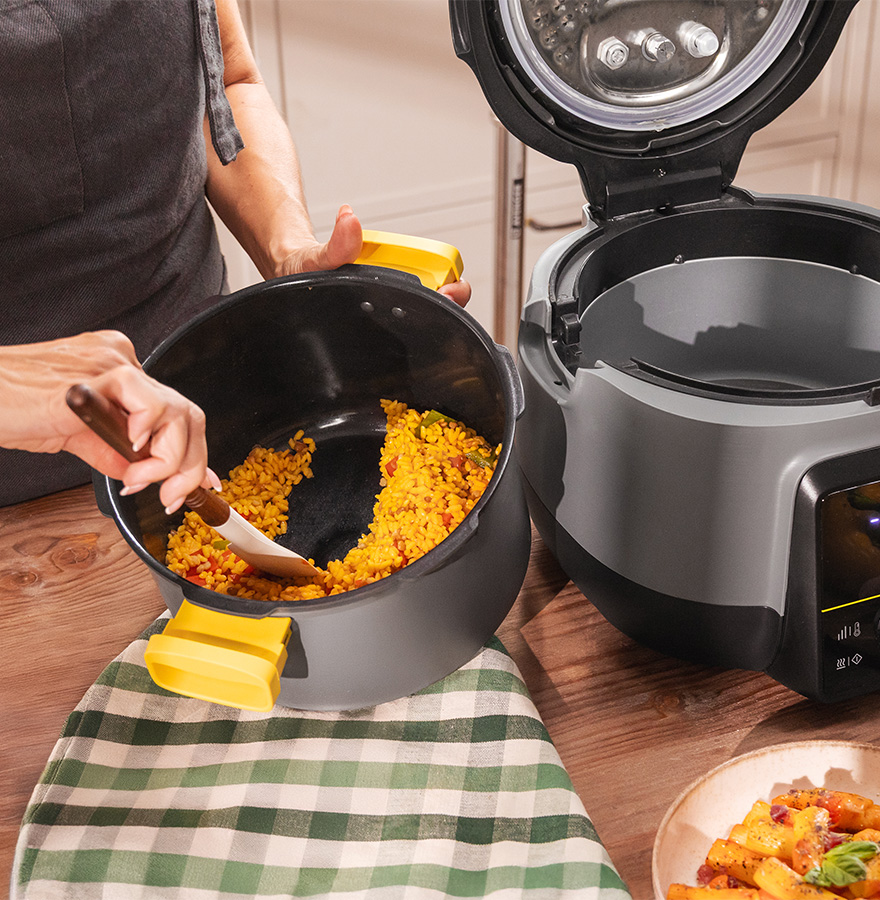 5 litros de capacidad y 13 programas para cocinar gran cantidad de platos de forma rápida, fácil y cómoda. Guisa, fríe, hierve, hornea, cocina al vapor, cocina a presión, entre otras funciones con las que podrás preparar entrantes, arroces, pasta, guisos, estofados, pescados, postres y mucho más.