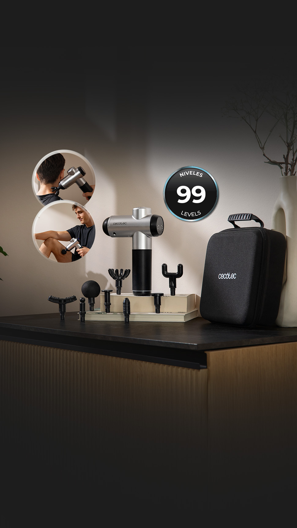 SkinCare Massage Full Recovery: Pistola de masaje con 99 Niveles de Intensidad, Pantalla, Motor Brushless, 8 Cabezales, Estuche .