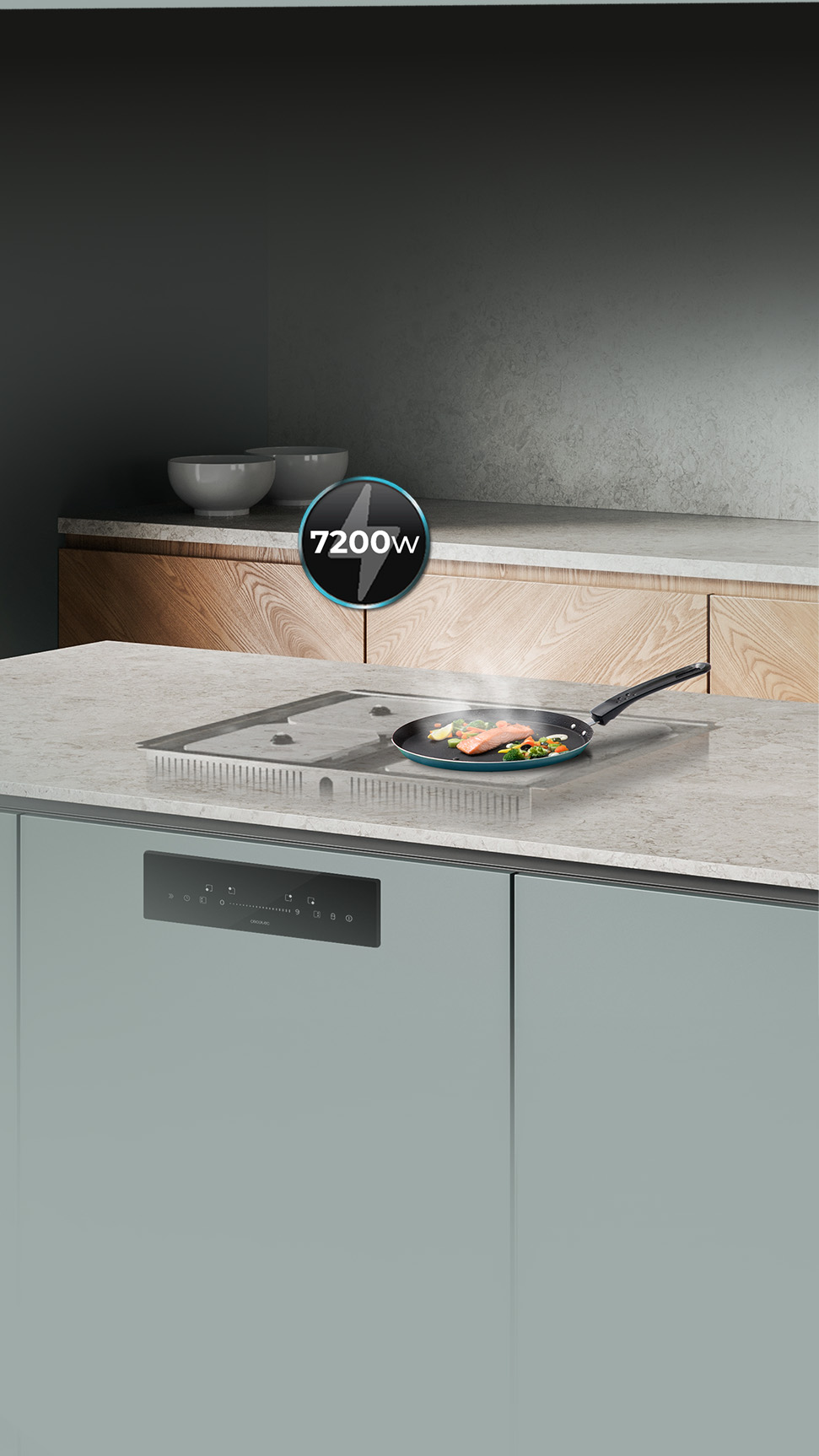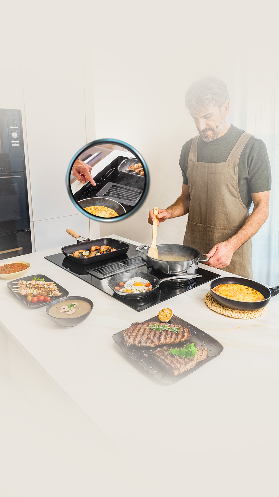 Maneja tu placa simplemente con deslizar el dedo, para una selección de potencia y de sus funciones cómoda y sencilla.