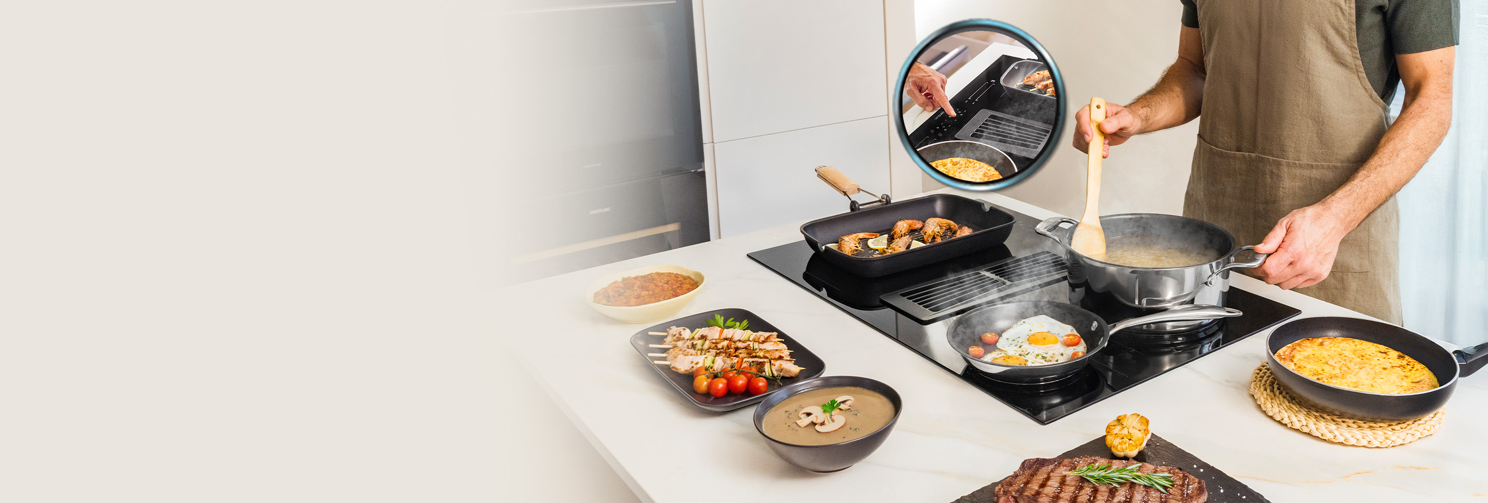 Nuestra Flex Zone es una mejora para tu cocina. Une los cuadros de inducción para cocinar en recipientes más grandes o úsalos por separado para cocinar diferentes recetas a la vez.