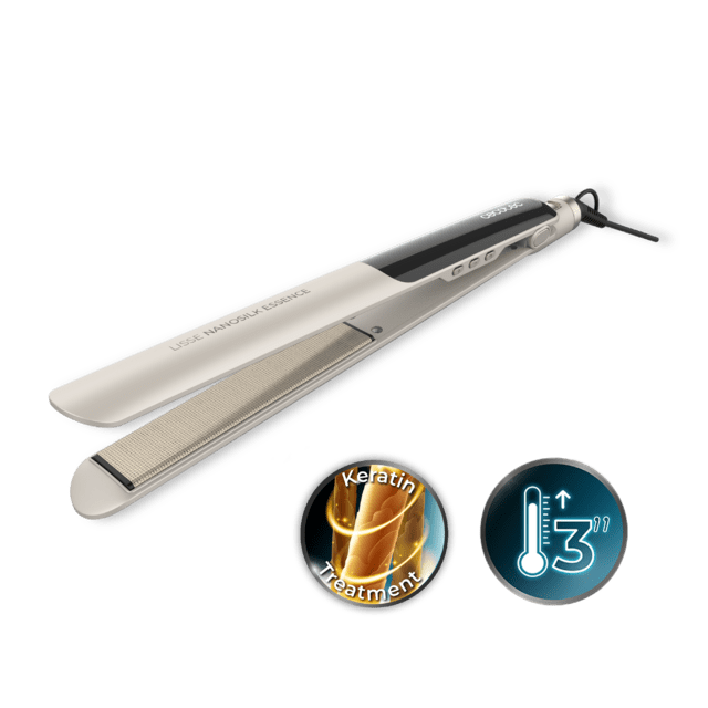 Lisse NanoSilk Essence Champagne: Plancha de Pelo Estrecha con revestimiento NanoSilk, Función HeatMax, 130-230ºC, Bloqueo de Placas, Apagado Automático, Incluye Bolsa de Viaje