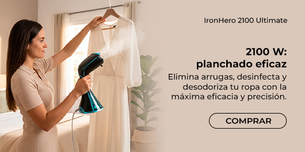 IronHero 1800 Ultimate Plancha vertical con 1800 W, suela cerámica y pantalla con dos niveles de vapor.