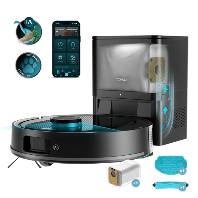 Con Conga Y80, no limpias, no recoges, no mantienes. Sus 13000 Pa, cepillo de silicona y estación de autovaciado la hacen ideal para casas con mascotas y para los que buscan despreocuparse de la limpieza diaria.