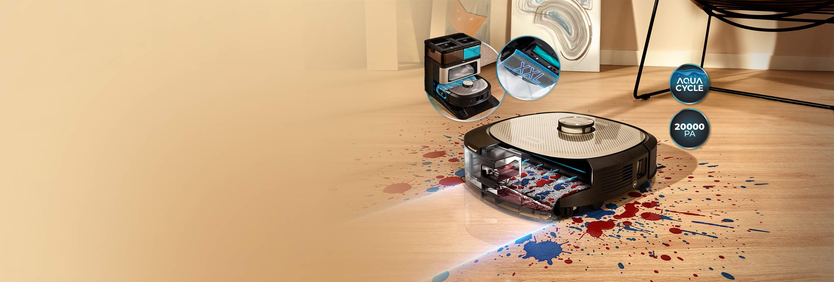 Cuida el robot por ti: corta y aspira los pelos, limpia y desinfecta las mopas, vacía y recarga los depósitos.