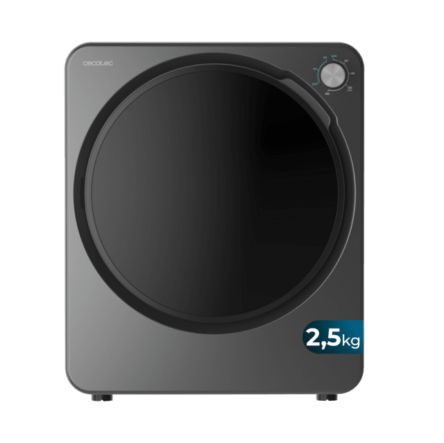 • Mini secadora compacta de 2,5 kg, ideal para espacios pequeños. Perfecta para poca ropa, fácil de instalar y con secado rápido y eficiente.