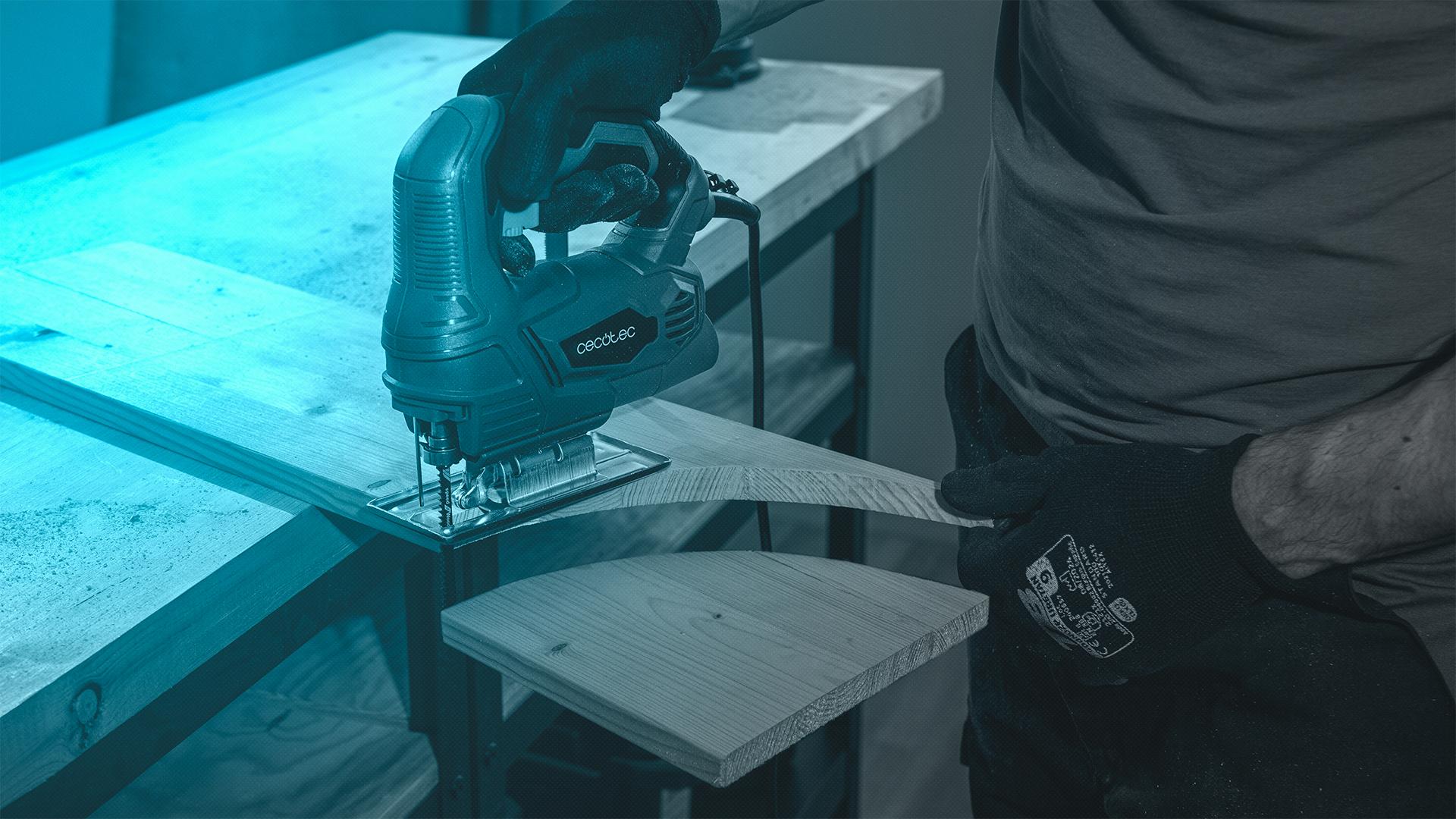 Sierra de calar con cable de 2 metros y una potencia de 400 W, que asegura un rendimiento y facilidad de uso increíbles, para hacer frente a los trabajos más exigentes con mayor libertad y seguridad.