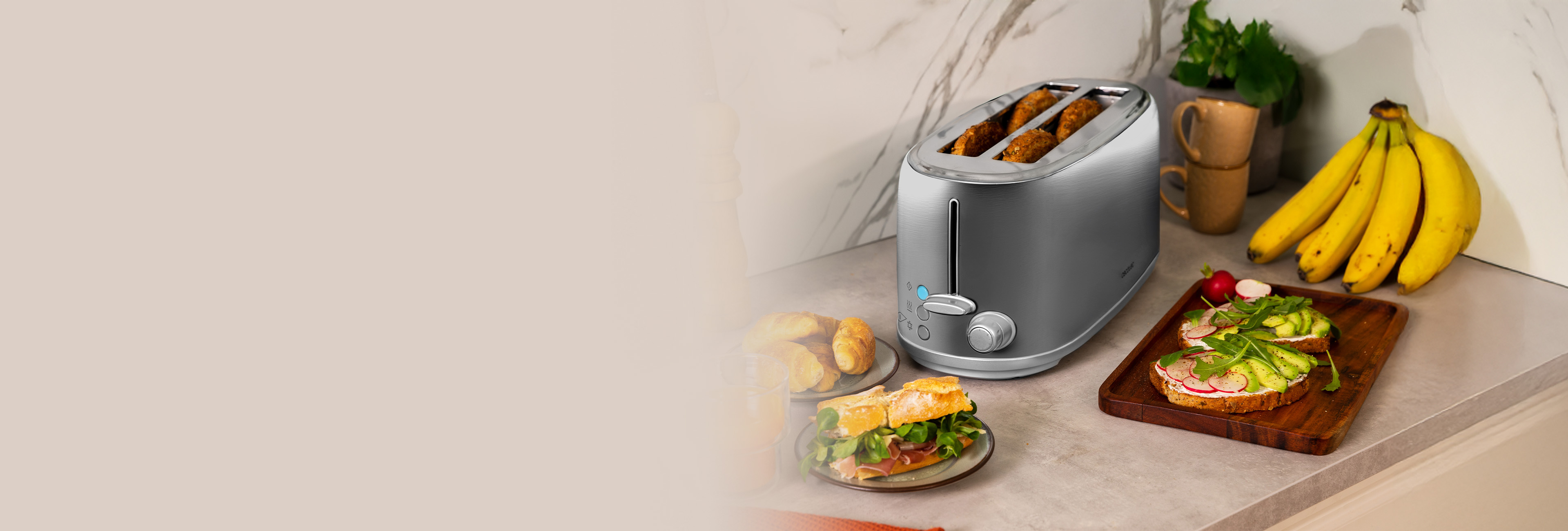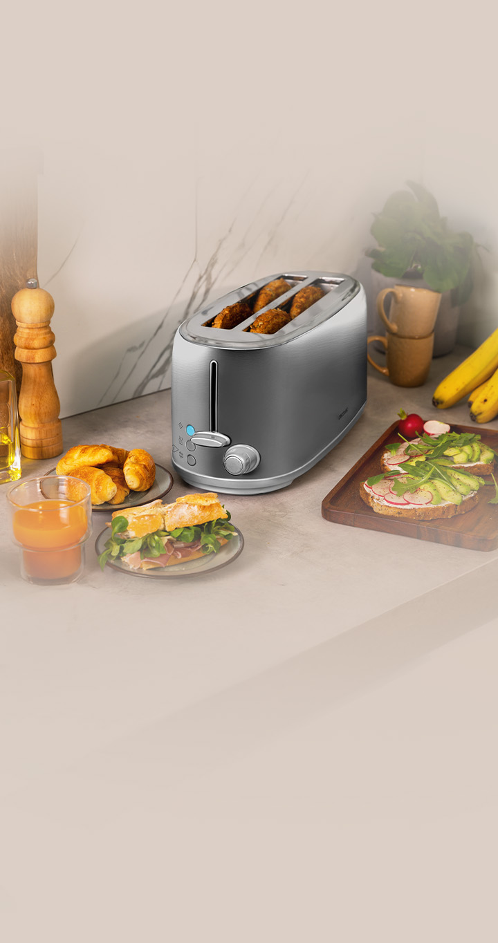 Prepara hasta 4 tostadas a la vez gracias a su doble ranura.
