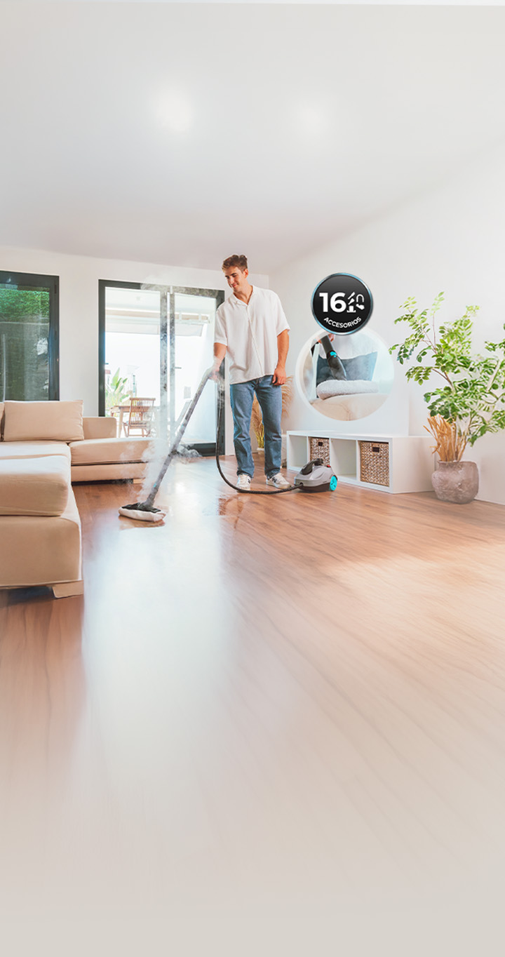 Con sus 1350 W y sus 3 bares de presión conseguirás una limpieza total con solo vapor.