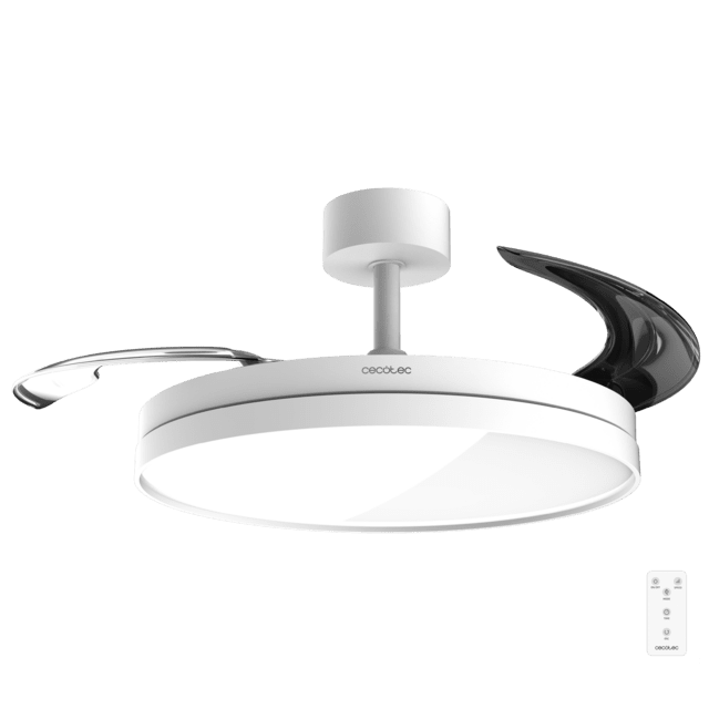 • Diseño elegante y discreto de 3 aspas retráctiles que se despliegan sólo cuando el ventilador está en uso, integrándose perfectamente en cualquier decoración.