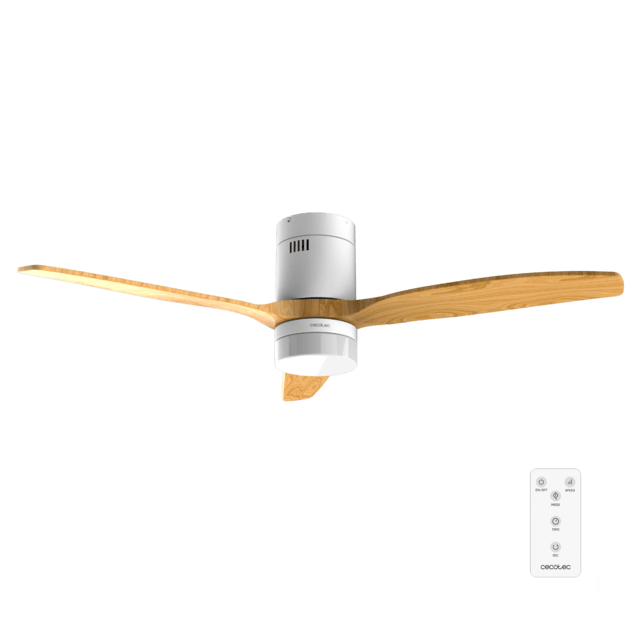 EnergySilence Aero 4600 Arctic White&Sand Ventilador de techo de 38 W y 52” efecto madera, con mando a distancia, luz LED, 6 velocidades, 3 aspas, modo winter-summer y temporizador de hasta 8 horas.