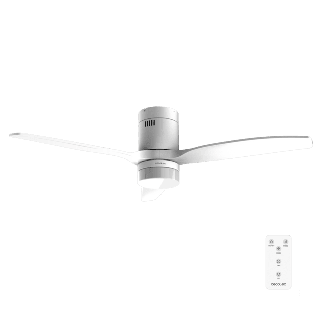 EnergySilence Aero 4600 Arctic White&White Ventilador de techo de 38 W y 52” efecto madera, con mando a distancia, luz LED, 6 velocidades, 3 aspas, modo winter-summer y temporizador de hasta 8 horas.
