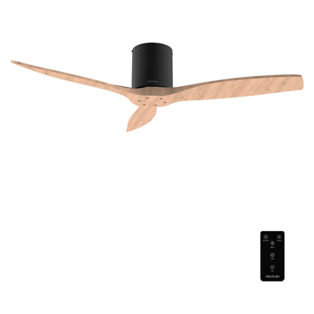 EnergySilence Aero 5400 Classic Black&LightWood Ventilador de techo de 40 W y 52” con mando a distancia, mando a distancia, 6 velocidades, 3 aspas, modo winter-summer y temporizador de hasta 8 horas.
