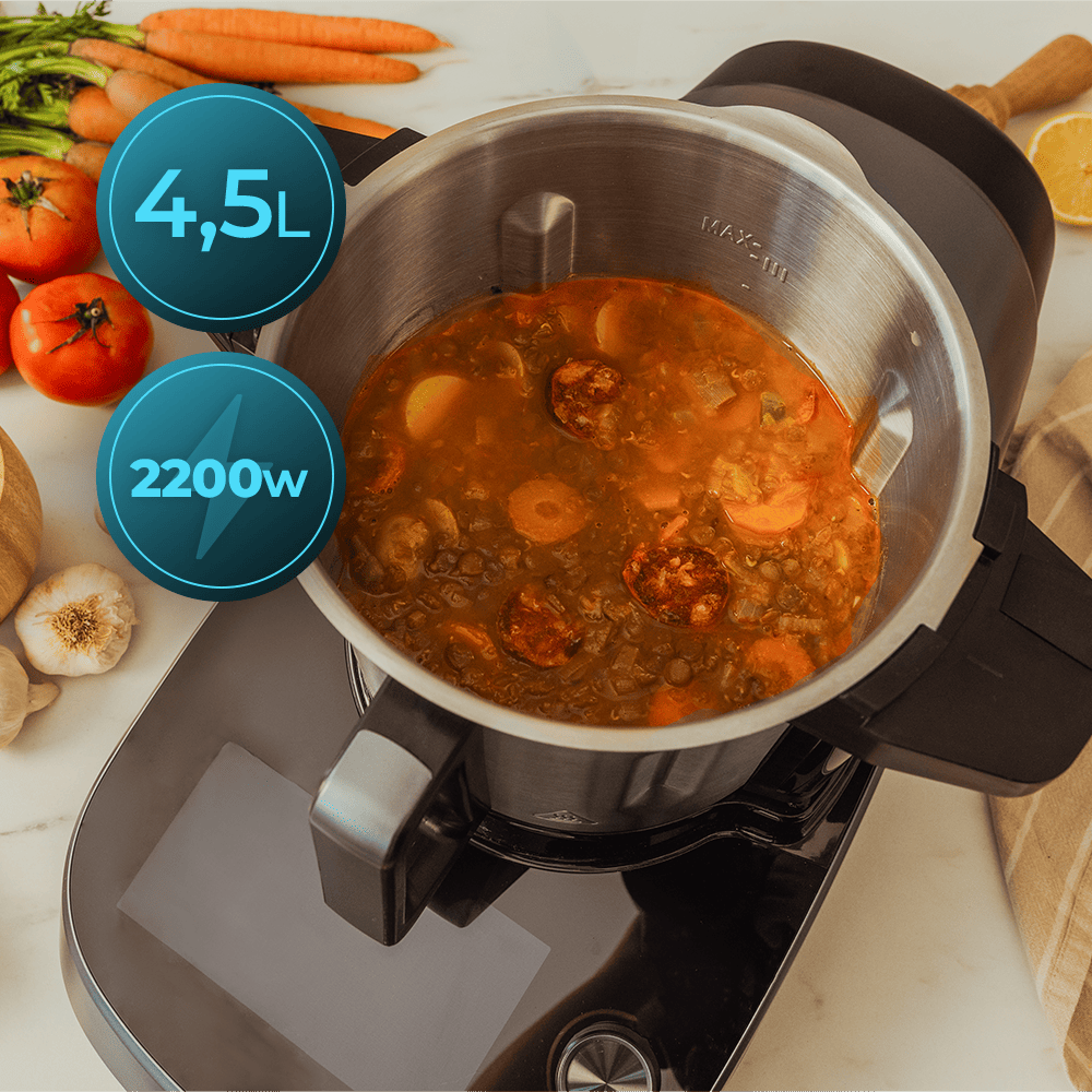 Disfruta de un equipo de cocina especializado con 45 funciones. Cocina todo con un único aparato de cocina, gana espacio y disfruta de una versatilidad única gracias a su diseño multifunción.